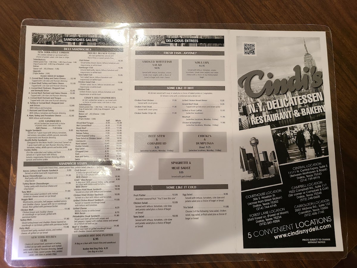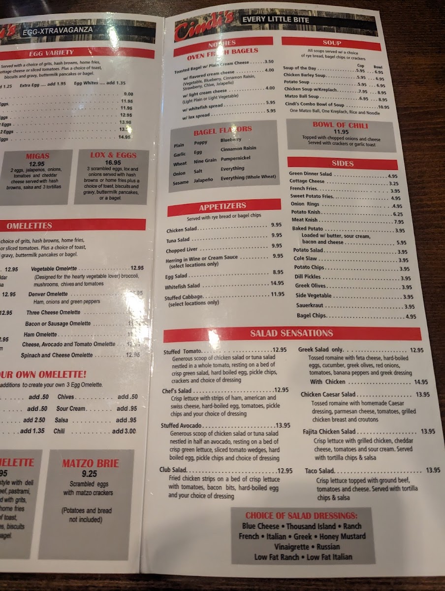 If you’re looking for a taste of New York right in the heart of Dallas, the Cindi's Ny Deli & Restaurant Menu is exactly what you need. Located at 11111 N Central Expy, this spot brings a classic deli experience with a twist of delicious homemade charm. Whether you’re in the mood for a hearty sandwich stacked with fresh ingredients or craving something more traditional, the menu has something to satisfy every craving. From bagels to knishes and all the comfort foods in between, Cindi’s delivers flavorful dishes that transport you straight to the Big Apple. Each item is crafted with care, ensuring that each bite is as satisfying as the last. So, whether you're stopping in for a quick bite or a leisurely meal, you’ll find just what you're craving at Cindi’s.